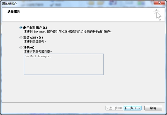 選擇“電子郵件賬戶”,點擊“下一步”。